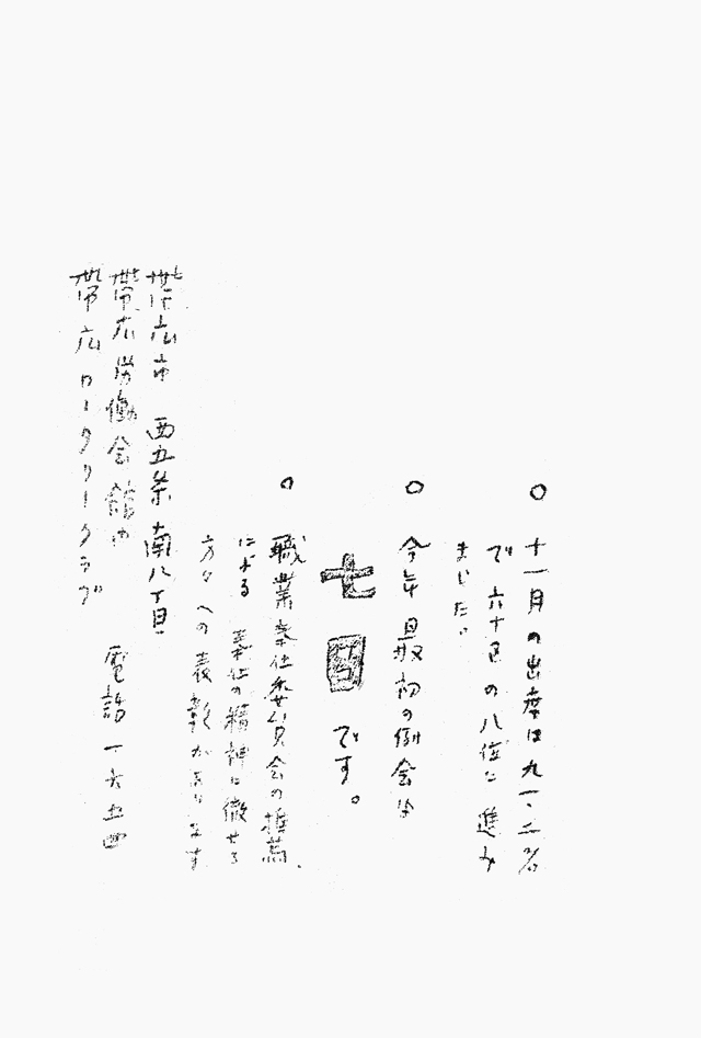 HOME >RC 今昔物語 > 昭和27年12月17日 RC会報 admin 昭和27年12月17日 RC会報 2008.07.09 帯広ロータリークラブの昭和27年12月17日の会報、表面です。 帯広ロータリークラブの昭和27年12月17日の会報、裏面です。
