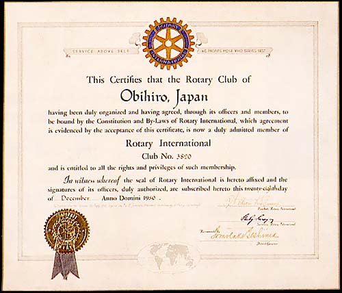 - 1950年12月 チャーターメンバー34名にて帯広ロータリークラブ 再出発
