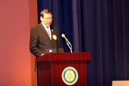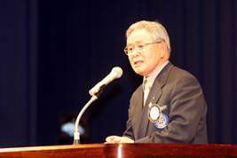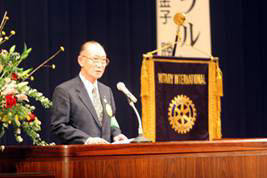 森本 RI第2500地区第6分区都市連合会開会にあたりご案内申し上げましたところ、ご来賓と致しまして芽室町長常山誠様のご臨席を賜わり、合田賢二ガバナー、パストガバナー、元分区代理、元、前ガバナー補佐の方々にお元気な姿で参加頂きました。又分区内会員の皆様には全員登録を頂いて今回のIMを開催できますことはホストクラブと致しましてこの上ない喜びであり、衷心より厚く御礼申し上げます。誠にありがとうございました。家内ガバナー補佐のご指導を頂き、佐藤会長の下にIM準備委員会を設置し企画検討を重ね、全会員による実行委員会を組織し準備を進めてまいりました。IMは分区内の会員が集まり会員相互の親睦を深めロータリー情報を交換し奉仕の理想について勉強する機会でもあります。そこで今年のIMは2つの柱を掲げました。1つには経営者の職業モラルと題しましてテレビ等でお馴染みの慶応 義塾大学金子勝教授に基調講演をお願い致しました。昨年秋からの耐震強度偽装に始まり今年に入ってライブドアと関連会社を巡る証券取引違反、最近では全国の東横インの無断改造等が発覚する等経営者の経営モラル欠如に起因すると思われる大変大きな社会問題が発生している今、時宜に適したご講演であり皆様と共に傾聴致したく存じます。2つにはロータリーの職業奉仕とはの表題の下、道下俊一パストガバナーを中心に帯広5クラブのロータリアン5名によるシンポジウムであります。職業奉仕はロータリーの永遠のテーマであり示唆に富んだ討論を期待しております。皆様と一緒にお聞きしたいと思います。本日のIMが参加頂いた皆様方にとりまして相互理解、情報交換の場となり親睦が更に深まる起因となりますれば誠に幸いと存じます。皆様のご支援に感謝申し上げ一層のご協力をお願い申し上げ開会のご挨拶と致します。IMのご参加誠にありがとうございました。 |