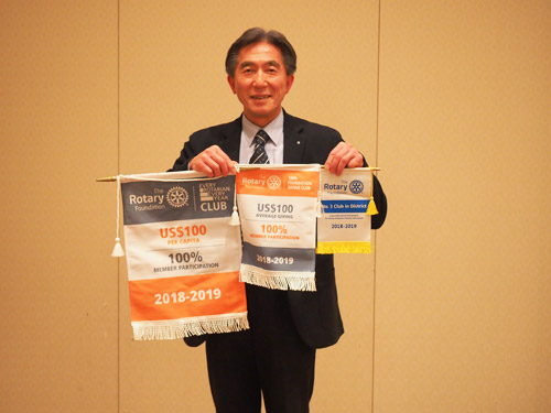 帯広ロータリークラブが2018-2019和田会長年度の寄付に対して、ロータリー財団管理委員会より4つの表彰を受けました。