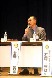 | 道下 はい、非常に貴重なご意見ありがとうございました。4つのテストと自分の仕事。そこにどう結び付けていくか。あの、良く新しい会員の人達と話しますと、職業奉仕とそれから社会奉仕の、さっき遠藤会員もちょっと言いましたが、区別がどこにあるか。わかりやすい例で話してくれということで話したこともありますが、タクシーの運転手が先ずドアを開けて私たちに何処へ行きますかって言った時に、そこの目的地まで安全に連れていくのが先ず彼の職業奉仕だ。そしてもう一つ考えれば車内を良く奇麗にしておく。煙草の匂いなどさせておかない。それが彼の職業奉仕であって、彼が帰りに道に迷っている老婆を乗っけてその老婆の家まで届けた。しかしそれは彼の職業奉仕ではなくてそれは社会奉仕だというようなことも私たち習ったことがあります。又中山という食道外科で有名な先生がいたんであります。千葉医大であります。彼の所にはしょっちゅう外国からも医者が来て食道外科の彼の手技を見学する、教えてもらうということがずーっと続いていたんであります。彼は全く隠すことなく彼の技術を全部の医者に伝えたんであります。そして彼が言ったことは何か。私は一生かかって食道手術をやる人数は決まっている。しかし私は多くの医者を育てることで世界中に私の何倍もの手術をできる医者を養成することができるだろうと。それが職業奉仕だと私たちは教えられたんであります。又関西に有名なお菓子屋がありました。そしてそこで作った饅頭はものすごく売れるんであります。ところが3時になると全く売り切れてしまう。それで友達たちが勿体ない、お前作れば作るだけ売れるんだから作れよ。彼は何て言ったかといいますと作れば作る程売れる、しかし多く作ればその中にミスが必ず出てくる。それは私にとっては耐えられない。私の作っている饅頭は皆さんに喜ばれ、そして皆さんにその何の疑いもなくあそこの饅頭は絶対うまい、そして安心できる、そんなことを植えつけるのが私の仕事だということを言っていたということを教えられたことがあります。そんなことで遠藤君もう足すことがあれば発言して下さい。
